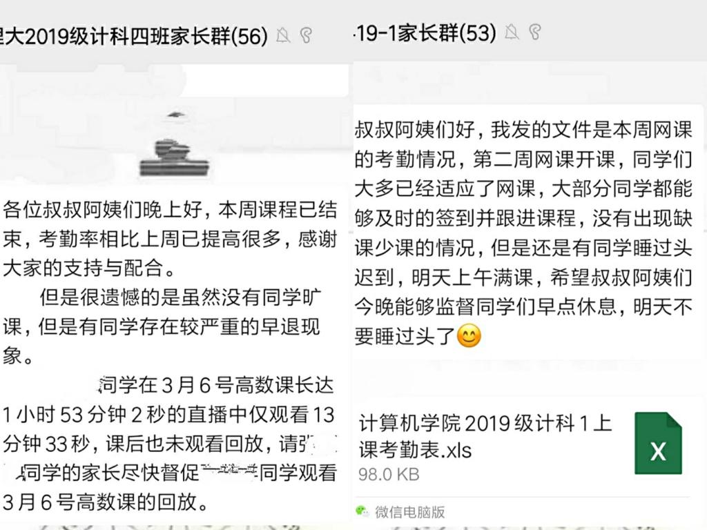 离校不离线,防控就是每个人的责任。疫情发生过后,学院全体学工队伍立即转入“战时状态”,做到每日学生健康打卡与科学抗疫,学生假期学习规划跟进“不断线”。学院制定细致的“停课不停学”计划,学院领导及时监督,辅导员进入线上课堂巡课,任课老师全天候线上答疑和总结,学习委员配合考勤打卡,建立严格考勤制度,确保每一位学生高效完成线上学习。开课一周,辅导员及时汇总各班针对线上学习的建议和反馈,做到细致入微,这是在非常时期对学生们温暖的鼓励,线上课程也获得了家长们的一致好评。