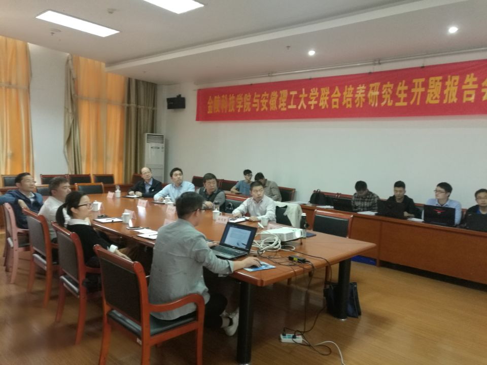 开题报告会上,5名工程硕士分别结合他们在金陵科技学院所做的工程项目,如恶劣天气的车辆识别,农业专家在线系统等,分别做了汇报。每位学生报告结束以后,安徽理工大学的硕士生导师和金陵科技学院的硕士生导师,一一做了点评,在肯定同学们在科研工作取得成绩的同时,也指出存在的不足和缺陷。最后赵前进强调,开题是课题研究的第一个环节,也是关键环节,直接关系到学位论文的质量;希望同学们珍惜在外做科研的经历,敢于钻研,为将来走向社会奠定良好的知识储备和技术储备。