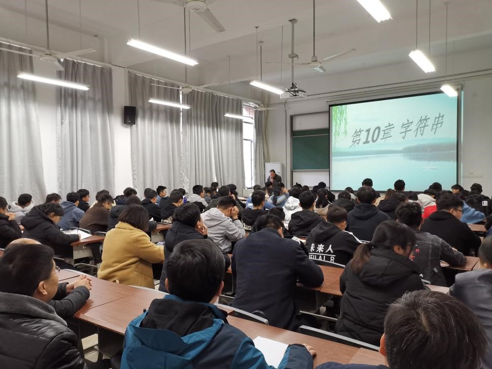 11月28日下午,计算机学院在天工北105举行教师公开示范课教学观摩活动。汤文兵教授主讲示范课程《高级语言程序设计》第10章“字符串”,汤教授从字符串常量、字符串存储、字符指针、字符串的访问和输入/输出等内容深入浅出进行讲解,他思路清晰,内容充实,知识面宽泛,信息量大,结合实例采用启发式、参与式教学方法,学生兴趣浓厚,课堂气氛热烈。医学院党委书记刘群红、计算机学院有关领导和部分教师参加了此次观摩活动。