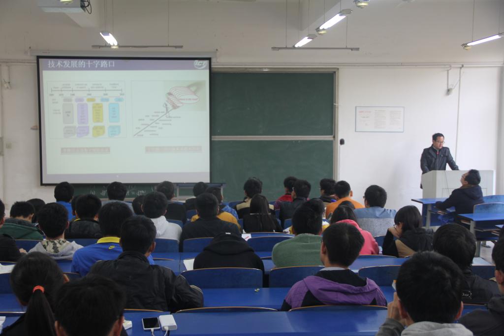 11月12日上午,中科院计算机研究所张玉成博士应邀来我校做了题为《面对产业需求的信息技术、科研实训平台建设方案》的学术报告会。计算机学院2013级和2014级物联网工程专业的学生和2014级辅导员赵威老师聆听了报告会。