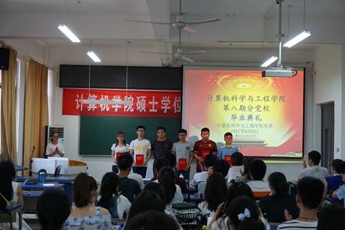 6月9日下午,计算机科学与工程学院分党校第八期发展对象培训班毕业典礼在求本楼B401会议室举行。计算机学院院长陆奎、院党委副书记蒋群,学院辅导员和培训合格的76名学员参加了毕业典礼。