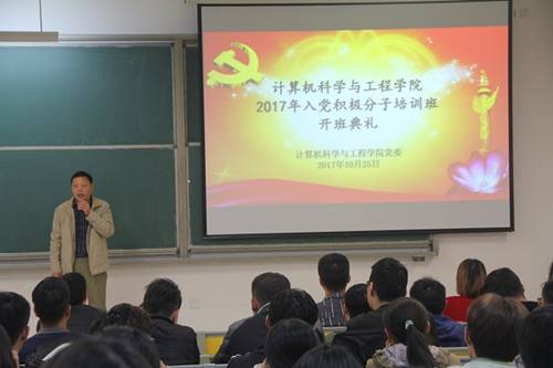 10月25日晚,计算机科学与工程学院在明理北108举行了2017年入党积极分子培训班开班典礼。参加本次开班典礼的有学院全体辅导员和本期107名入党积极分子,院党委副书记(主持工作)王永祥出席典礼并讲话。