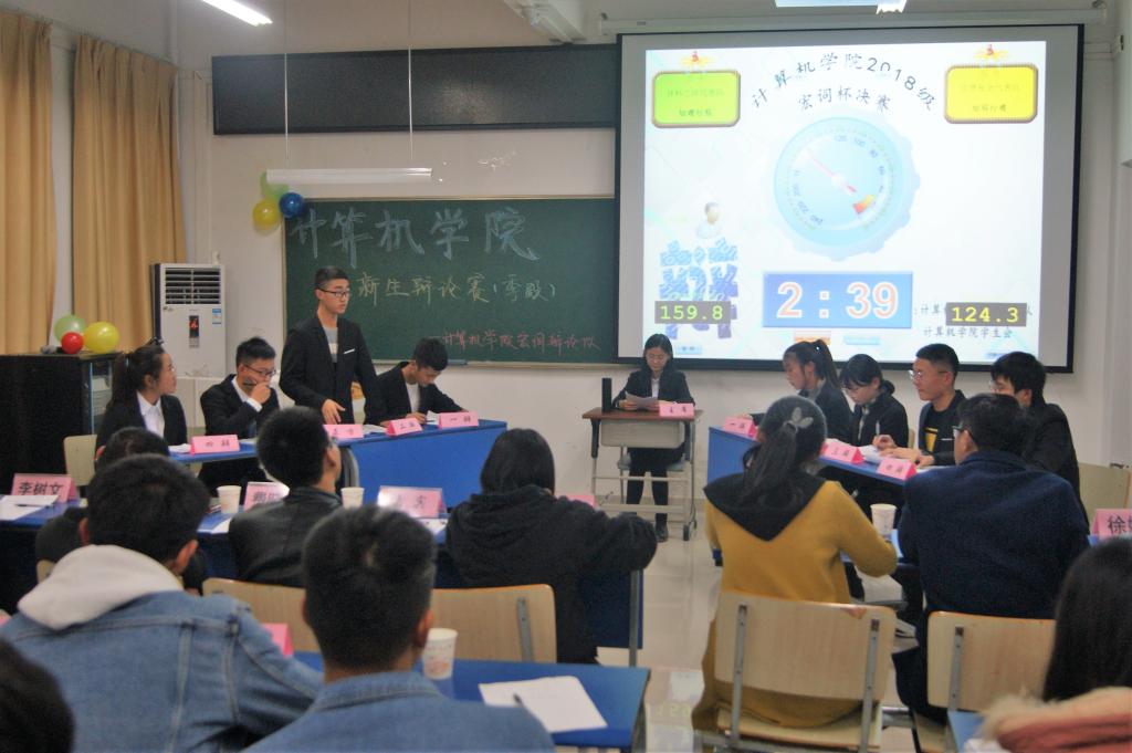 此次“宏词杯”新生辩论赛共有18级12个班组建的12支辩论队报名参赛,首轮采取淘汰赛制。经过预赛,计算机18-5班和物联网18-1班2支辩论队进入季殿争夺赛;计算机18-2班和信息安全18-1班2支辩论队进入最终的冠亚争夺赛。两场争夺赛的正反双方分别围绕“不想当将军的士兵是否是好士兵”和“知易行难还是知难行易”展开激烈交锋。赛场上双方选手在立论、驳论、自由辩等环节中旁征博引、引经据典、侃侃而谈,气势如虹。