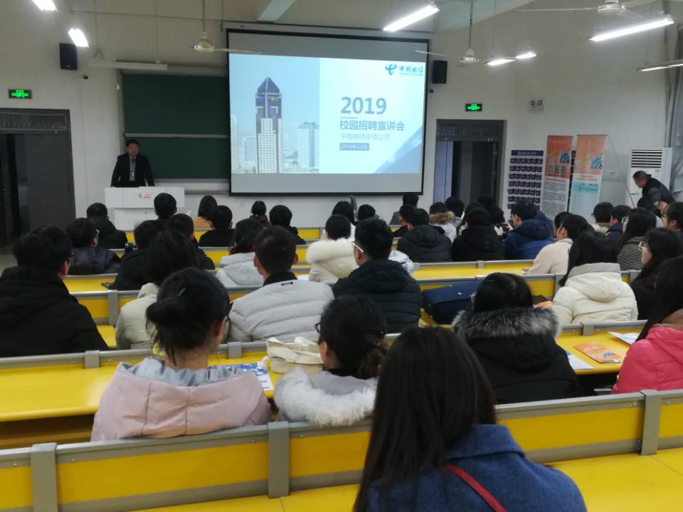 12月26日下午,应计算机学院邀请,中国电信安徽分公司、南京联迪信息系统股份有限公司、安徽博约信息科技有限公司、科大国创软件科技股份有限公司、合安信息科技有限公司等五家企业在明理楼202举办2019届毕业生专场招聘会。学院党委书记王永祥、执行院长赵前进、党委副书记兼行政副院长张旸莅临现场,毕业生辅导员赵威及150余名毕业生参加了招聘会。