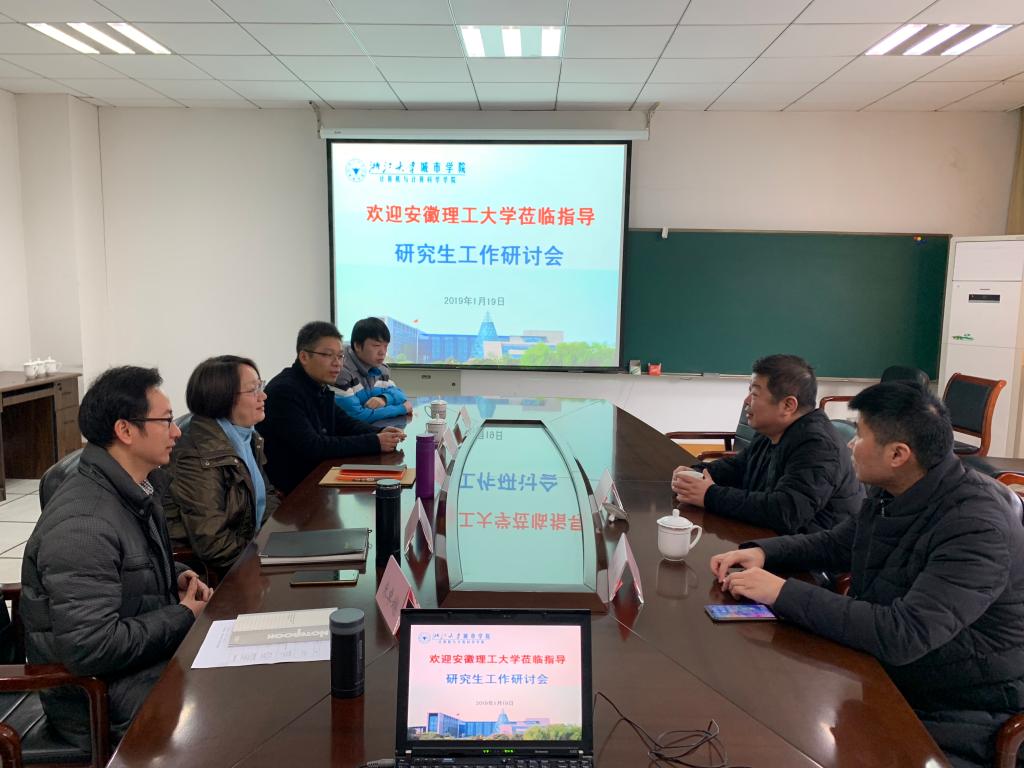 1月19日上午,计算机科学与工程学院执行院长赵前进、党委副书记兼行政副院长张旸一行3人到浙江大学城市学院计算机与计算科学学院座谈研究生工作。浙江大学城市学院科研部部长郑增威、计算机与计算科学学院院长颜晖、副院长陈观林等参加座谈交流。