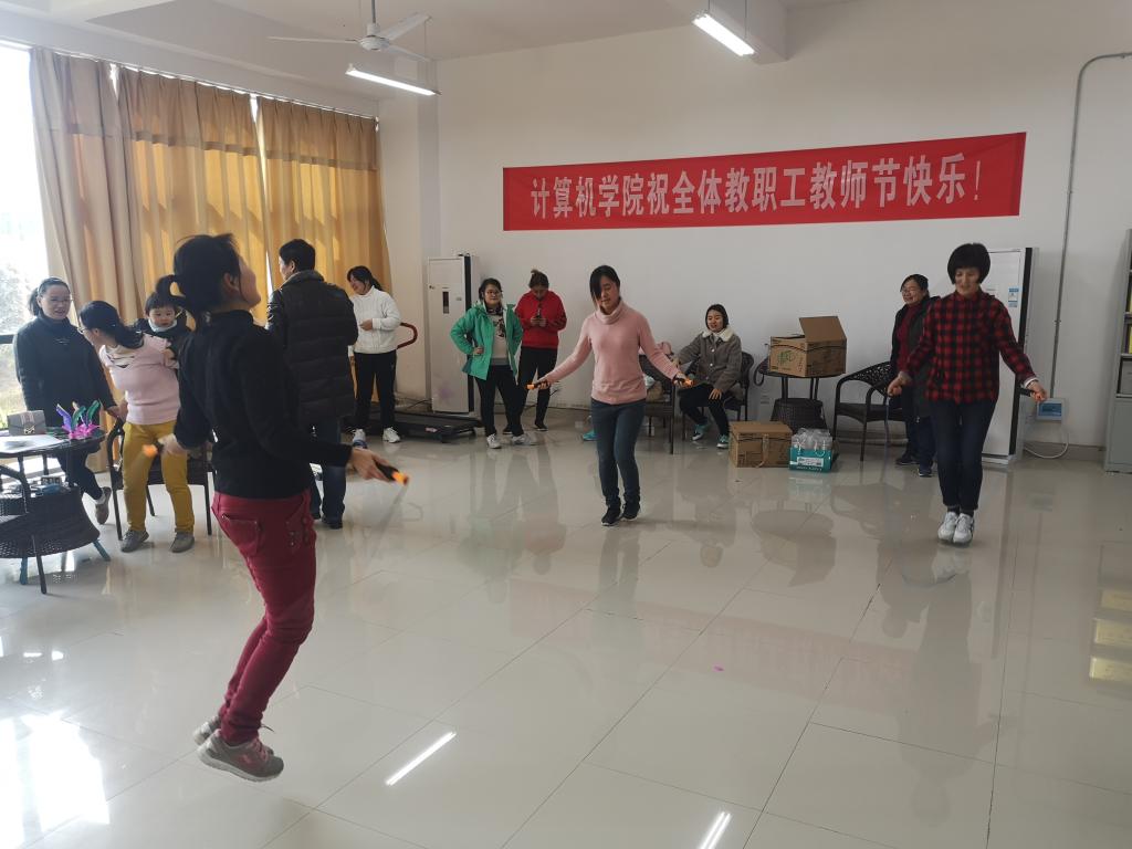 为纪念第109个“三八”国际劳动妇女节,丰富学院女教职工文化生活,3月8日下午,计算机学院分工会在学院工会活动室举办了女教职工投掷飞镖、跳绳和踢毽子等比赛。学院党委副书记兼行政副院长、分工会主席张旸主持比赛并作讲话,希望大家能在繁忙工作之余,多关注身体健康,多参与体育锻炼,树立“快乐工作、健康生活”的意识,并预祝大家取得好成绩。