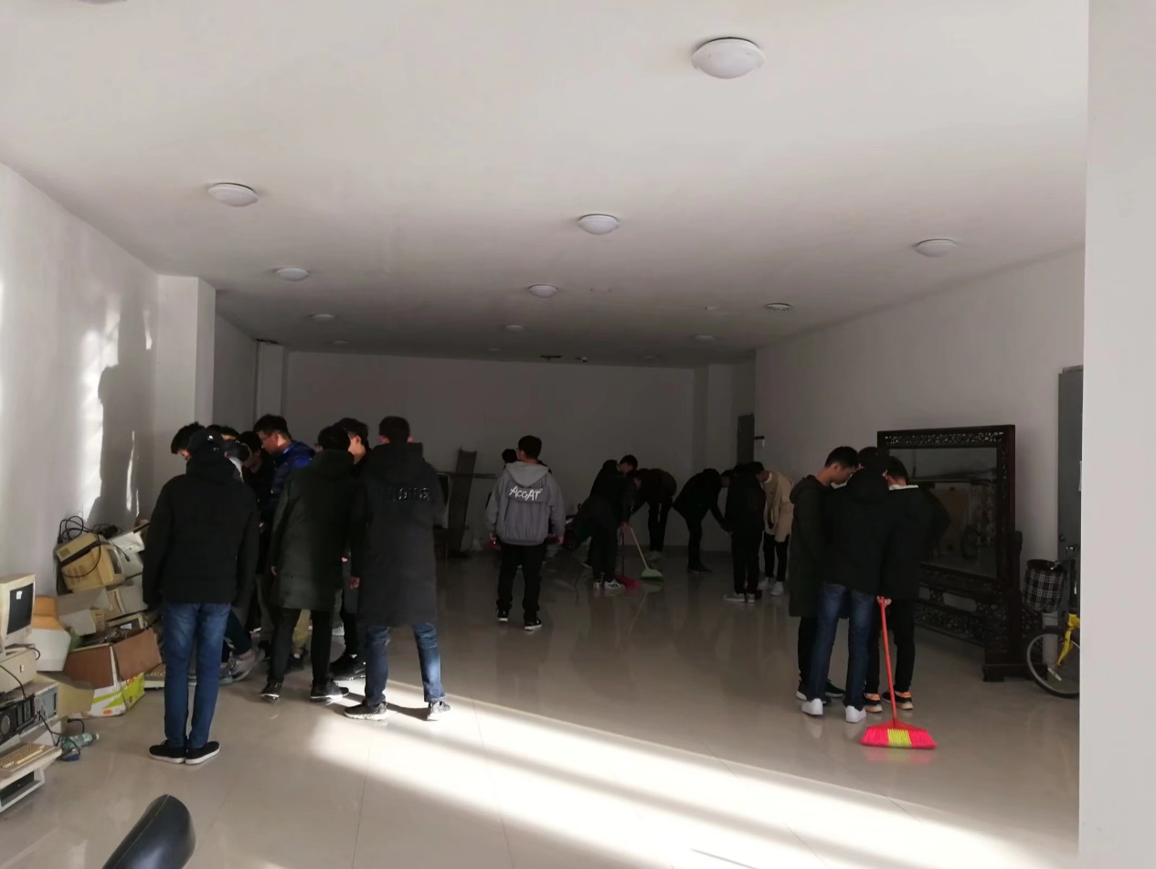 团员们早早地到达求本楼,在计算机学院2018级辅导员李恕洲老师的带领下积极开始清理工作。天气严寒,但团员们热情高涨,大家努力克服每一处小问题,不放过一块污渍,擦不干净就多擦几次……团员们之间的协作配合也让打扫工作更为高效有序地进行。很快,桌子上摆放着充满厚重感的计算机。