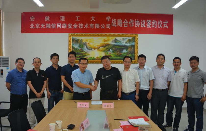 随后,双方签署了《安徽理工大学计算机学院与北京天融信网络安全技术有限公司战略合作协议书》。