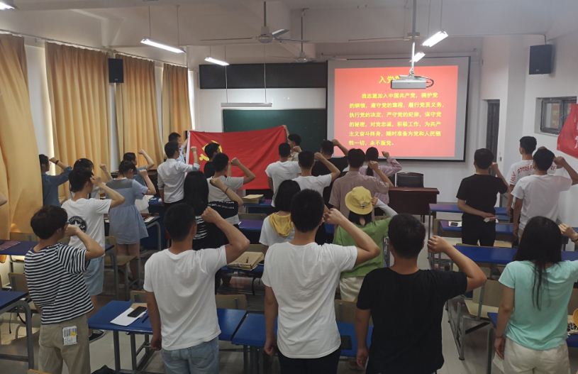 重温誓词,光荣使命在心间。6月5日上午,学院组织2019届党员毕业生在B401报告厅举行重温入党誓词活动。全体党员毕业生面向党旗,郑重宣誓:“我志愿加入中国共产党,拥护党的纲领,遵守党的章程……”。党员毕业生的内心在充满骄傲和自豪的同时,也多了一份责任与使命的担当。