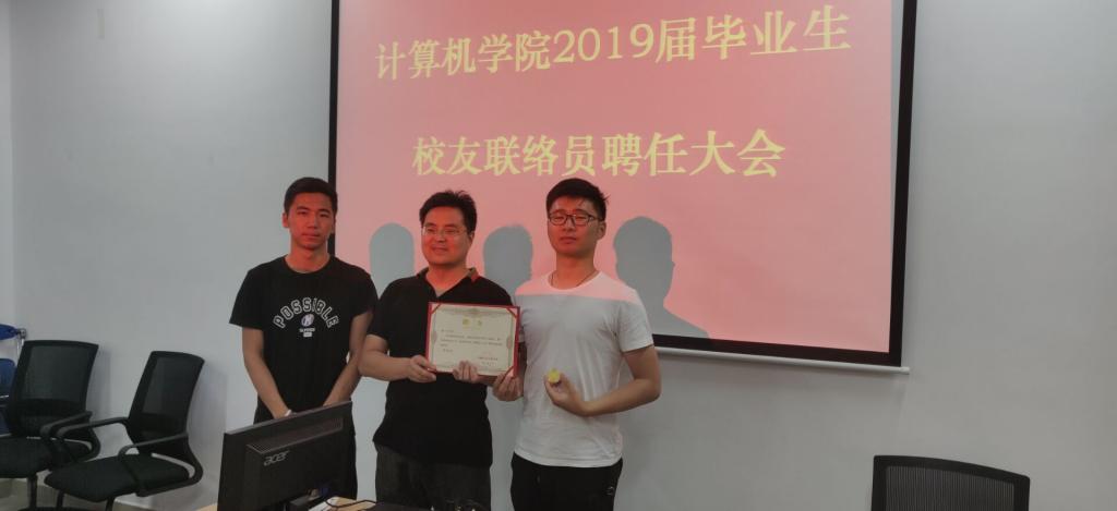 聘任仪式上,赵威宣读了《关于聘任2019届毕业生校友联络员的决定》,并为毕业生校友联络员代表颁发聘书。