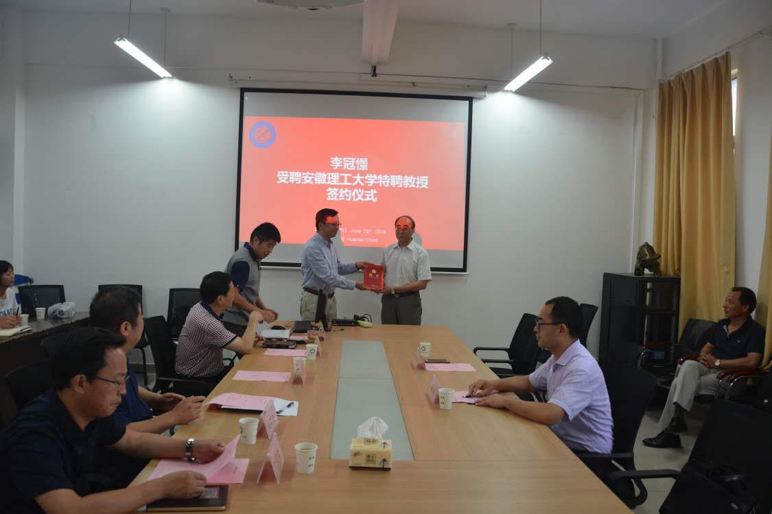 6月25日下午,学校在求本楼B403会议室举行聘任仪式,聘请国际工程技术学会(IET)会士李冠憬教授担任我校特聘教授。校党委常委、副校长郑明东出席会议并为李冠憬教授颁发聘书。