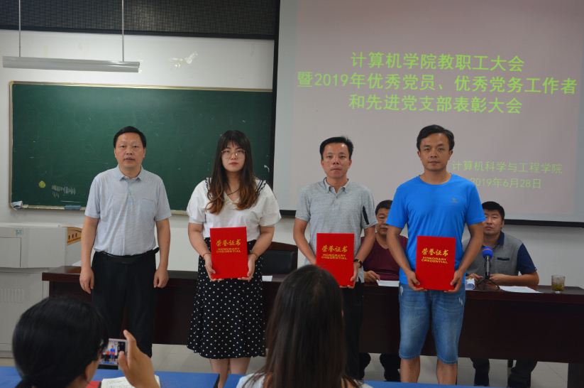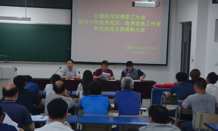 为庆祝中国共产党成立98周年,充分发挥基层党支部的战斗堡垒和先锋模范作用,6月28日下午,计算机学院在求本楼B401会议室举行2019年优秀共产党员、优秀党务工作者和先进党支部表彰会。学院全体教师和部分学生党员代表80余人参加了会议。