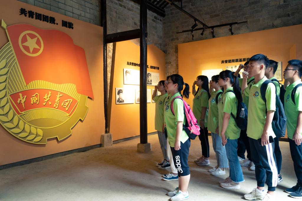 7月9日上午,队员们一同前往汤家汇镇参观“红色之乡”革命旧址,学习红色文化。团队先后参观豫东南道委、道区苏维埃政府旧址群、少共豫东南道委、少共赤南县委旧址——易氏宗祠、赤南县苏维埃政府旧址——廖氏太守祠、商城县总工会旧址——红色书店、赤色邮政局旧址——徐氏祠。队员们认真参观了每一处红色旧址,切身体会金寨县革命老区的红色文化,被这种红色精神深深打动。10日,团队成员们们前往天堂寨镇参观刘邓大军挺进大别山前方指挥部并合影留念。指挥部坐落于绿水青山间,却曾发挥利刃一般的作用痛击敌人,牵制敌方行动,留下一段光辉历史。