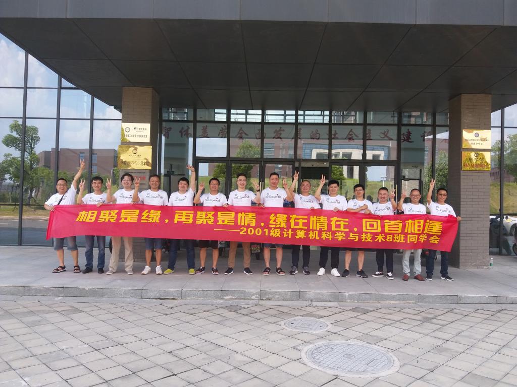 8月3日,计算机学院2001级计算机科学与技术专业8班15名毕业生返校聚会。校友们从北京、上海、深圳、南京、合肥、蚌埠等地齐聚阔别十余年之久的母校,游览新校区,参观学院的计算机历史博物展,到学生食堂就餐体验学生时代的生活,参观学院实验室并座谈交流,院党委副书记兼行政副院长张旸参加座谈会。