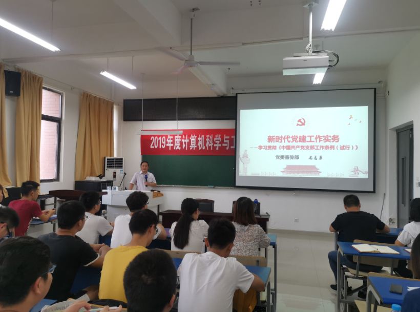 为深入贯彻党的十九大精神,推进“不忘初心,牢记使命”主题教育扎实深入开展,9月11日下午,计算机学院在求本楼B401报告厅举办2019年党员集中教育培训班。学校党委常委、宣传部统战部部长娄志勇为学院全体党员作了题为《新时代党建工作实务》专题报告。