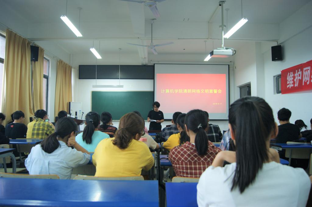 计算机学院开展了主题讲座,宣誓大会,网络安全知识竞赛动员会等活动。在主题讲座中,学生会主席刘荣臻提出“坚持底线,争当文明网友”的倡议,帮助同学们进一步认识到网络文明的重要性以及沉迷网络的危害性;在宣誓大会上,同学们庄严地举起右手,宣誓要成为合格的网络践行者并依次在横幅上签下名字以示决心;学院还召开2019年全国大学生网络安全知识竞赛动员会,动员2019级新生积极参加此次竞赛。