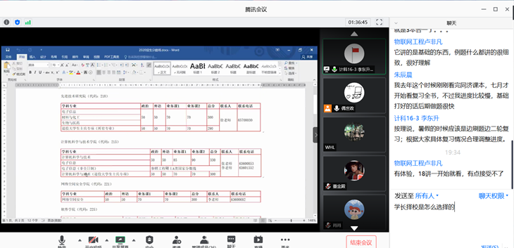 为了更好的给2021届学生介绍当前考研形势,分析考研路线,传授考研经验,6月12日至17日,计算机学院通过腾讯会议相继给即将考研的2021届学生开展了5场考研线上交流分享会,总参与人数达360余人。