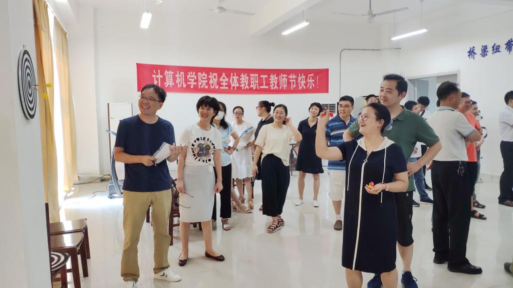 为迎接第36个教师节,丰富教职工的课外生活,增进彼此之间的情感交流,缓解压力,锻炼身体,促进学院工会的凝聚力建设,营造和谐的校园氛围。9月3日中午,计算机学院在求本楼院工会活动室举办“飞镖大赛”,参与教职工达70余人。