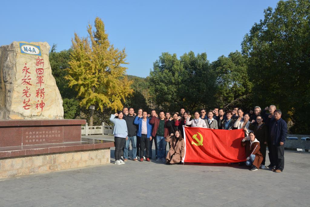 11月6日下午,计算机学院5个教工党支部共同组织党员前往上窑“新四军革命纪念馆”、“新四军纪念林”和“淮南市廉政教育基地”开展革命传统和反腐倡廉教育。党员教师们通过近距离地观看历史文物和史料记载,更加深刻地了解了革命先烈们用生命和鲜血践行“初心”的革命历程。在鲜红的党旗和庄严的“新四军精神永放光芒”纪念碑前,全体党员高举右手,郑重宣誓,重温了入党誓词,一声声铿锵有力的宣誓,饱含了全体党员对党的忠诚和对信仰的坚守。