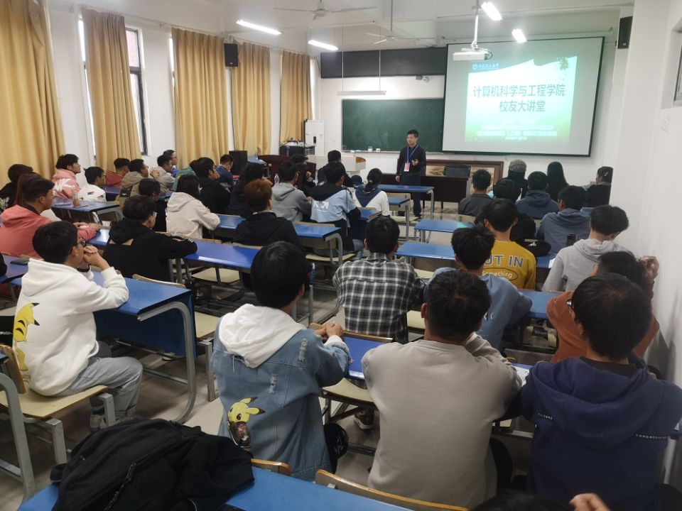 11月7日下午,计算机学院在求本楼B401开展校友大讲堂。计算机科学与技术专业2005届校友、朗戈智能系统(上海)有限公司总经理童祖德应邀作报告。院党委副书记兼行政副院长张旸主持报告会。