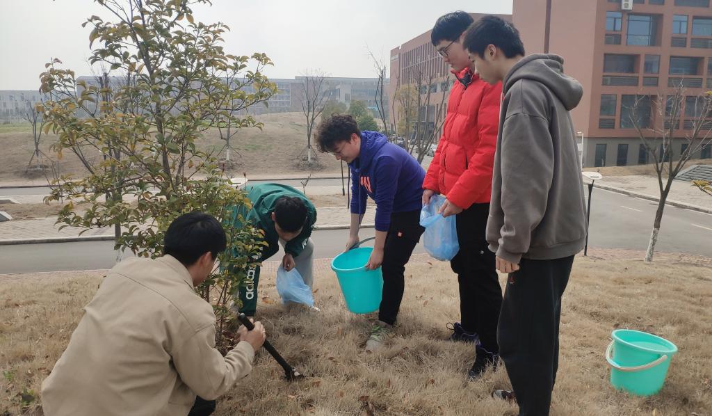 3月12日中午,学生党员们提着垃圾袋,拿着小铲子和水桶一一清理学校周边草坪上的纸屑、花坛里的树叶及绿化带内的垃圾,对绿植进行扶正、培土、修剪枝叶和浇水,用实际行动让更多人参与到保护环境行动中来,为营造绿色校园贡献自己的一份力量。