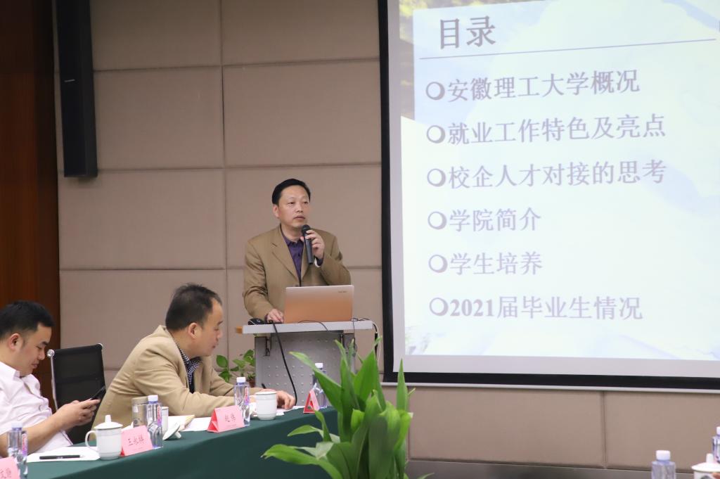 王永祥在会上作了交流发言,介绍了学校基本情况,阐释了学校就业工作特色及亮点,对校企人才对接提出了一些思考。同时,向与会企业推荐了学院2021届毕业生,欢迎各家企业来校招聘毕业生。