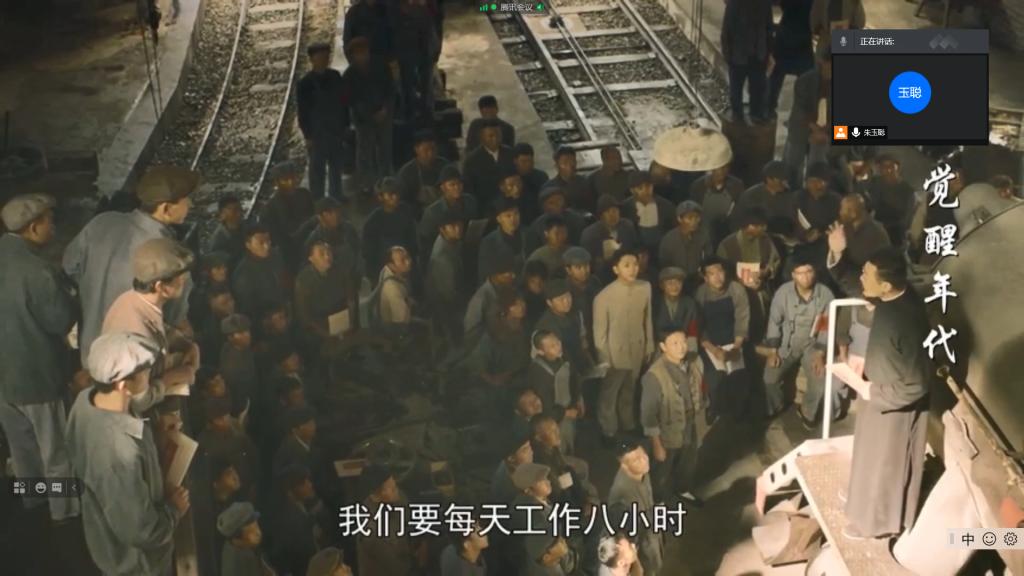 5月1日晚,学生党支部通过腾讯会议带领100余名入党积极分子观看了《觉醒年代》影视片段,该剧以1915年《青年杂志》问世到1921年《新青年》成为中国共产党机关刊物为贯穿,展现了从新文化运动、五四运动到中国共产党建立这段波澜壮阔的历史画卷。影片播放结束,不少学生心生感慨、激动不已,表示会继承和发扬党的光荣革命传统以及优良作风,不忘初心,砥砺前行。