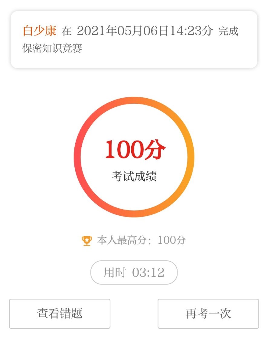 为庆祝中国共产党成立100周年,继承和弘扬党的保密工作优良传统。5月6日至12日,计算机学院党委高度重视,精心组织学生党支部积极开展庆祝中国共产党成立100周年保密知识竞赛活动。共计100余名党员和入党积极分子参与活动。