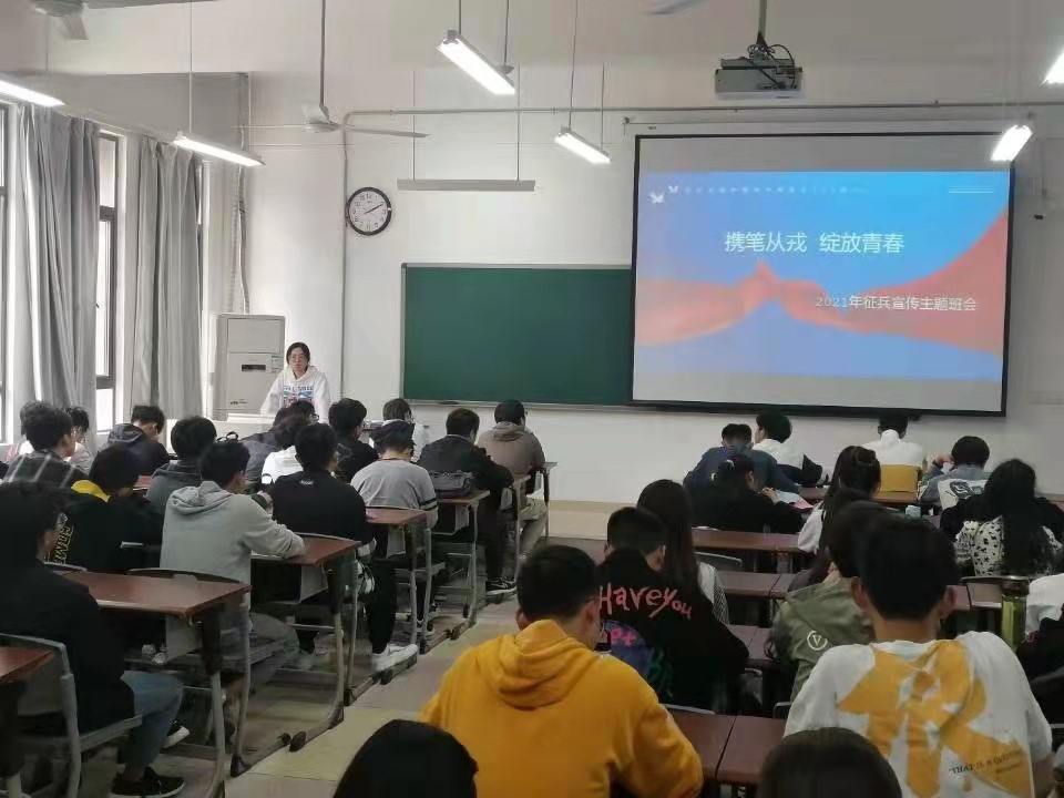 为做好2021年秋季征兵宣传动员工作,5月19日,计算机学院在天工南214教室召开征兵宣讲动员会,各年级辅导员、班级征兵宣传员和80余名参军意愿学生参与了现场宣讲活动,宣讲会通过线上直播的方式同步开展,100余名毕业班学生线上参加了会议。