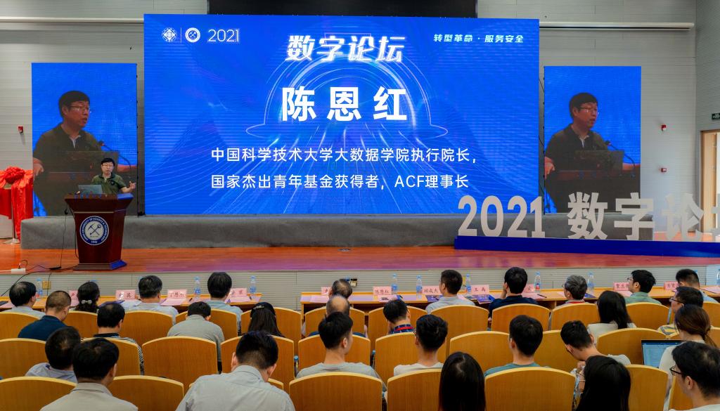 6月24日上午,由安徽省计算机学会(ACF)和安徽理工大学共同主办的“转型革命,服务安全”2021数字论坛在安徽理工大学舜耕会堂隆重召开。安徽理工大学党委副书记、校长袁亮院士出席论坛并发表重要讲话。中国科学技术大学、合肥工业大学、安徽大学等高校专家学者,科大国创股份有限公司、安徽大学出版社、安徽金禾软件股份有限公司等企业代表和安徽理工大学师生共300余人出席了论坛。论坛由校党委常委、副校长董雨主持。