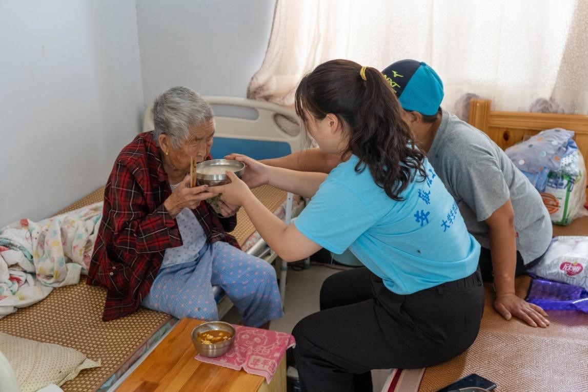 17日,志愿者们集体前往五柳敬老院开展关护老年人的慰问活动,同时开展对乡村福利建设情况的调研活动。在开展调研的同时,队员们走近老人,了解老人们的生活情况,与老人聊天,打扫居住房间,帮助行动不便的老人饮食,传递爱心,老人们备受感动。