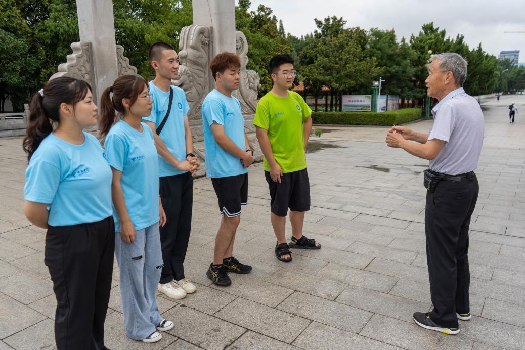 7月16日,志愿者们前往雪枫公园,认真学习彭雪枫将军的英雄事迹。团队邀请当地一名党员老爷爷给志愿者们讲述彭雪枫将军的英勇事迹,让团队成员深入了解先辈的革命事迹和峥嵘岁月。
