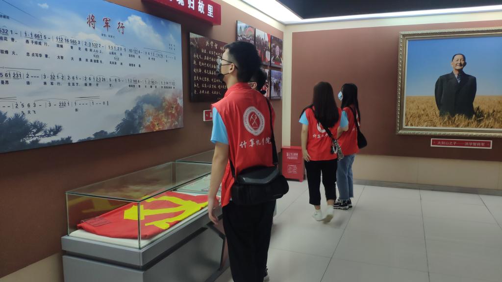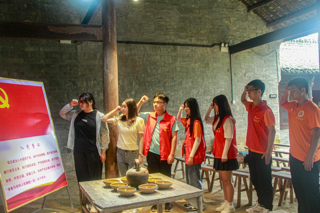 7月29日上午,志愿者们辗转来到汤家汇红色小镇,革命旧址内一张张珍贵的历史图片、一件件厚重的历史文物仿佛都在向志愿者们诉说着革命先烈的英勇事迹,带领大家走入那个血雨腥风的时代,体会革命先烈不怕困难、不怕牺牲、英勇不屈的伟大爱国情怀。“我志愿加入中国共产党,拥护党的纲领... ...”,面对鲜艳的党旗,志愿服务队的师生们在党史教育基地庄严宣誓,每名志愿者都感受到了作为青年大学生自己身上的时代责任和历史使命。最后,志愿者们通过合唱《八月桂花遍地开》感受当年红军的革命精神,表达对红军战士的崇敬之情。