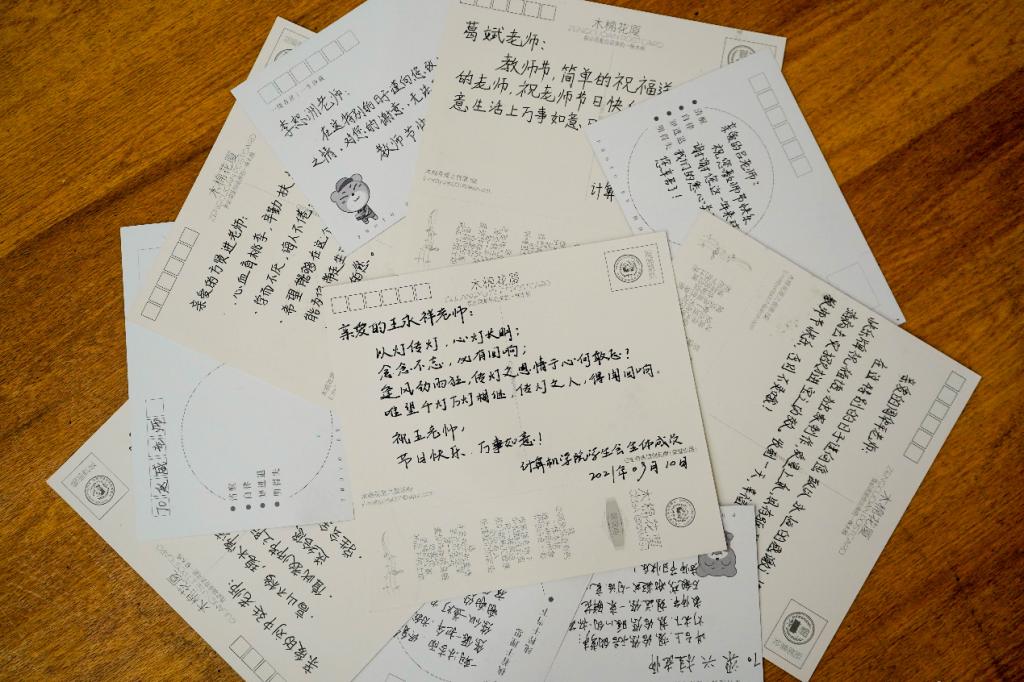 学生手写教师节祝福贺卡(摄影:李恕洲)