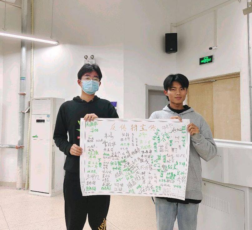 10月31日,各年级以班级为单位进行了“防传销”承诺签名活动,学生郑重的签下了自己的名字,并表示要坚决抵制传销,远离传销,坚决不参加任何传销活动。软件工程21-1班团支书李晏宁说:“我们采取签名的方式帮助大家更深入地了解了传销诈骗的手段,既加深自己的认知,也帮助大家提高了防诈骗的意识。”