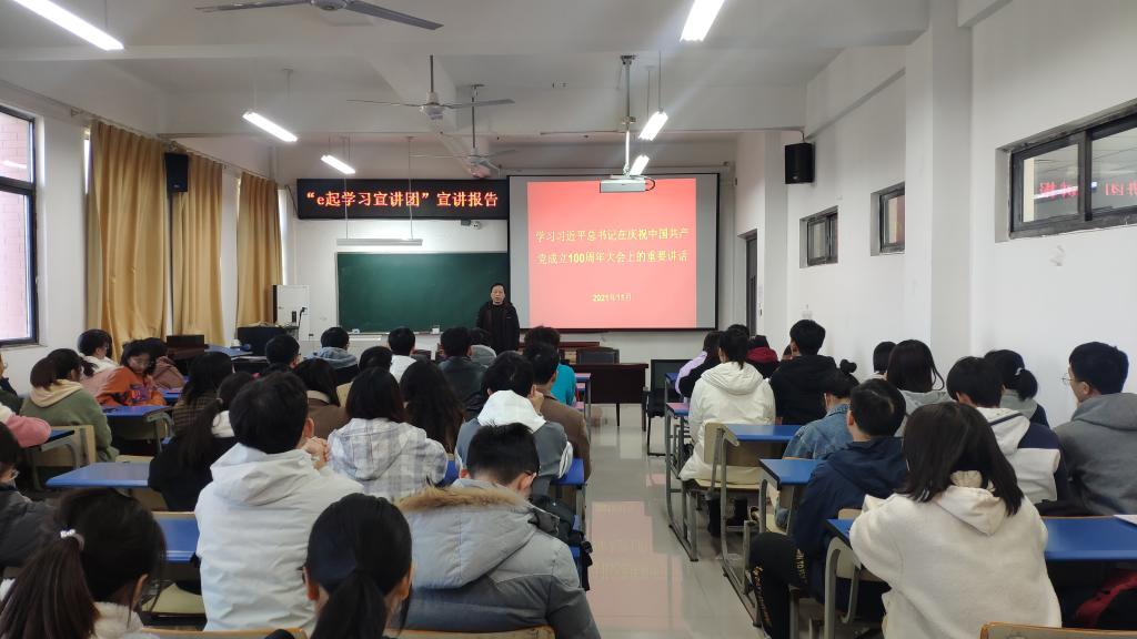 11月9日下午,淮南市“e起学习宣讲团”习近平总书记“七一”重要讲话精神报告会走进安徽理工大学计算机科学与工程学院。市“e起学习宣讲团”成员、安徽理工大学计算机科学与工程学院党委书记王永祥作宣讲报告。100余名学生聆听了本次报告。