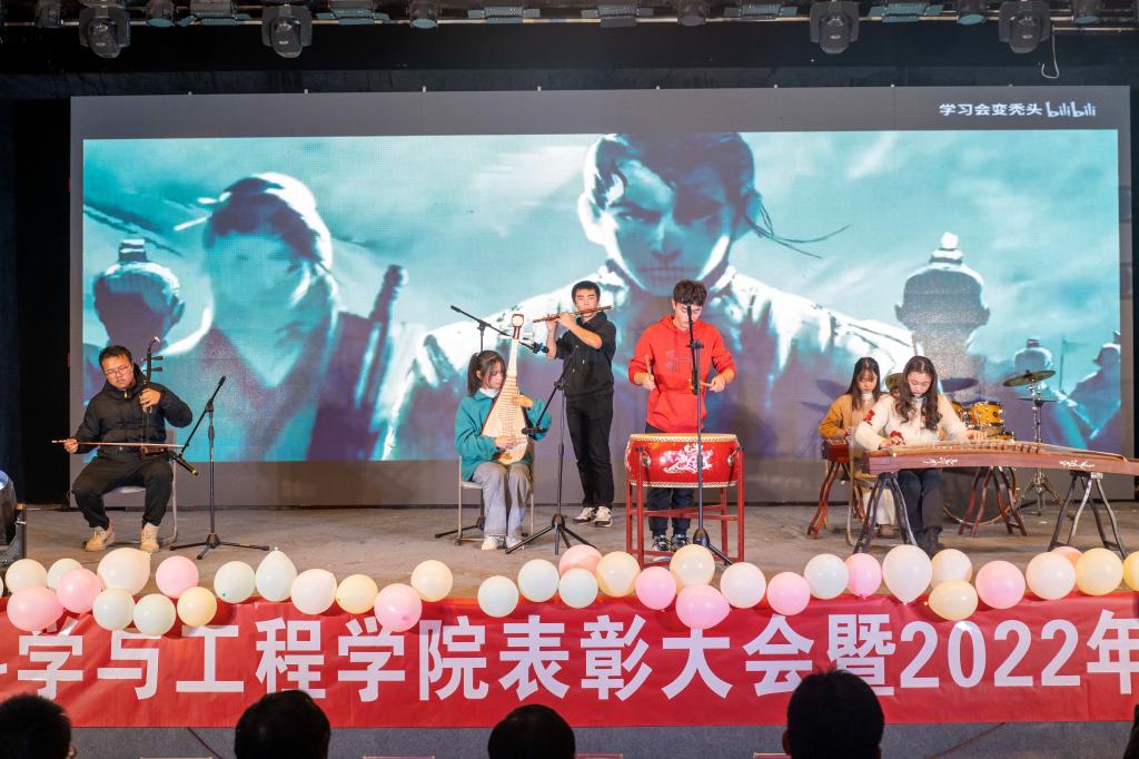 晚会有总结、有表彰,同时也是计算机科学与工程学院开展美育的重要形式。历年来,学院坚持立德树人的育人理念,持续开展多元化的育人举措,致力于实现新时代青年大学生德智体美劳全面发展,学院学风建设、学科竞赛、团学活动等多个领域的成绩突飞猛进。