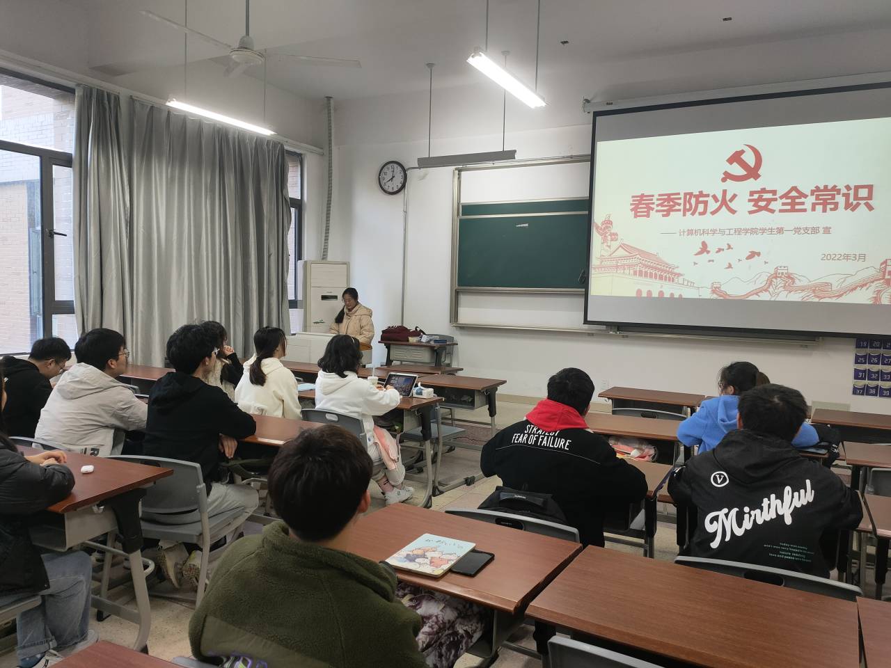 3月11日,学生第一党支部开展安全防火主题班会,结合典型案例,详细讲解了火灾预防、报警等消防安全常识,要求全体党员做好表率,在平时生活、学习中提高用火、防火安全意识,让学生们牢固树立“安全第一”的思想,教育学生增强安全防范意识。