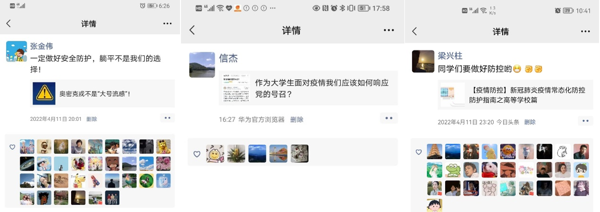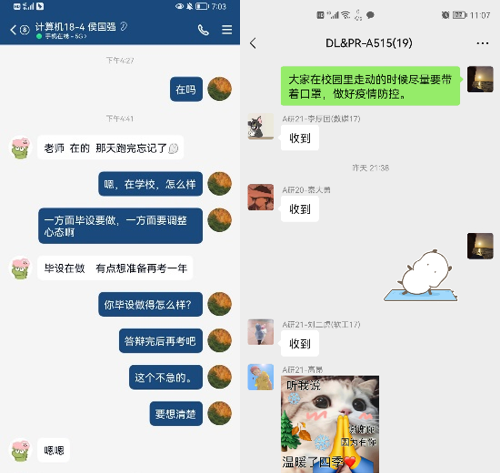 在活动周,支部党员利用微信朋友圈等自媒体发布疫情防控相关的知识,利用课余间隙、毕业设计线上指导和研究生组会时间,督促和提醒校内外学生做好疫情防控,并进行必要的心理疏导。