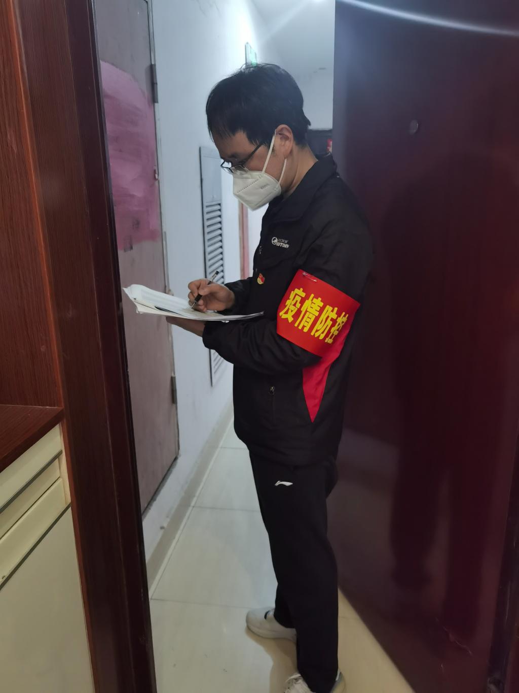 院办与实验室联合党支部党员张恭超老师在接到党组织发出的号召后也是第一时间在小区微信群报名,及时到社区报到。他严格按照“非防疫人员不得入内外出”的要求,逐一检查出入人员证件,做好“守门员”。张老师所在小区封闭管理后,很多居民储备物资不足,他主动化身物资“配送员”,承担起接收、分发并配送物资的工作。