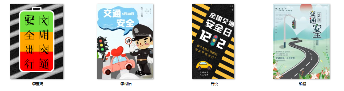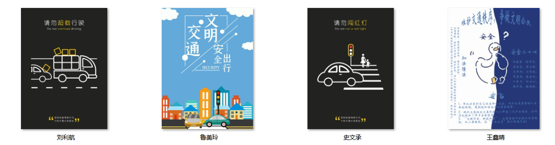 在此次活动中,各年级团支部积极组织学生参与交通安全海报设计,学生们的海报作品主题鲜明,展现了浓厚的创作热情与新锐独到的创作理念。从不同的角度,形象、生动诠释了青年学子对于交通安全的理解。