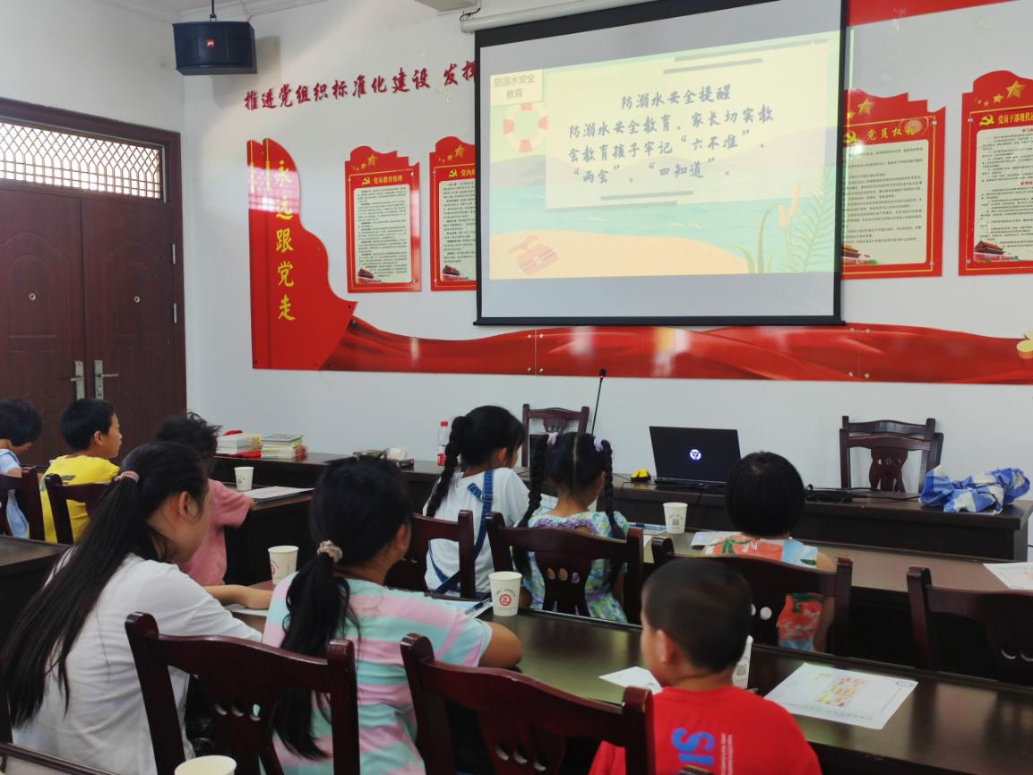 夏季是溺水多发季节,志愿者们利用课堂教育之余,为孩子们播放了防溺水的相关视频,让孩子们直观地感受到涉水的危险和遇到危险后的自救常识,告诫孩子们远离危险水域,不私自下河游泳,注意暑期交通和出行安全。随后,志愿者们分发了防溺水宣传单,将“预防溺水,从我做起”的理念最大限度地传达给留守儿童和家长。
