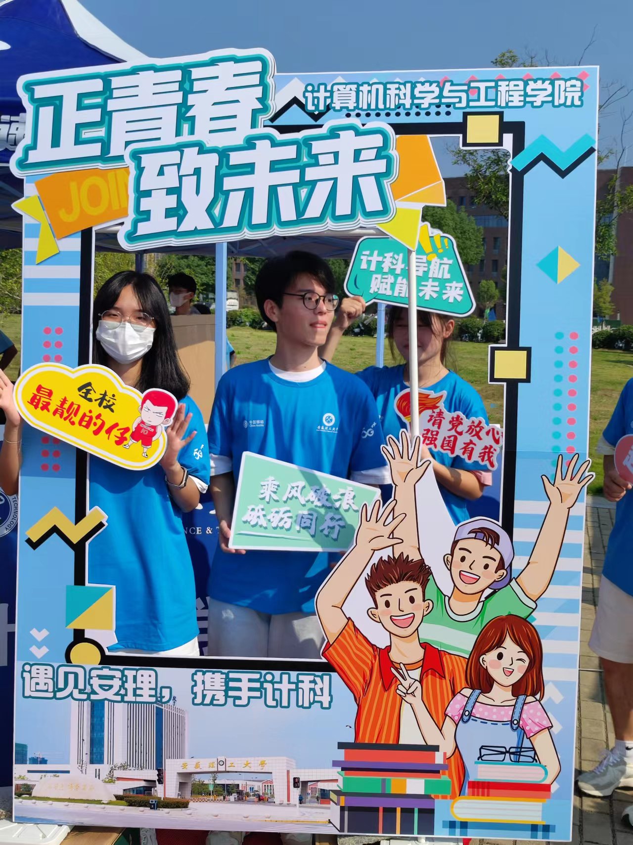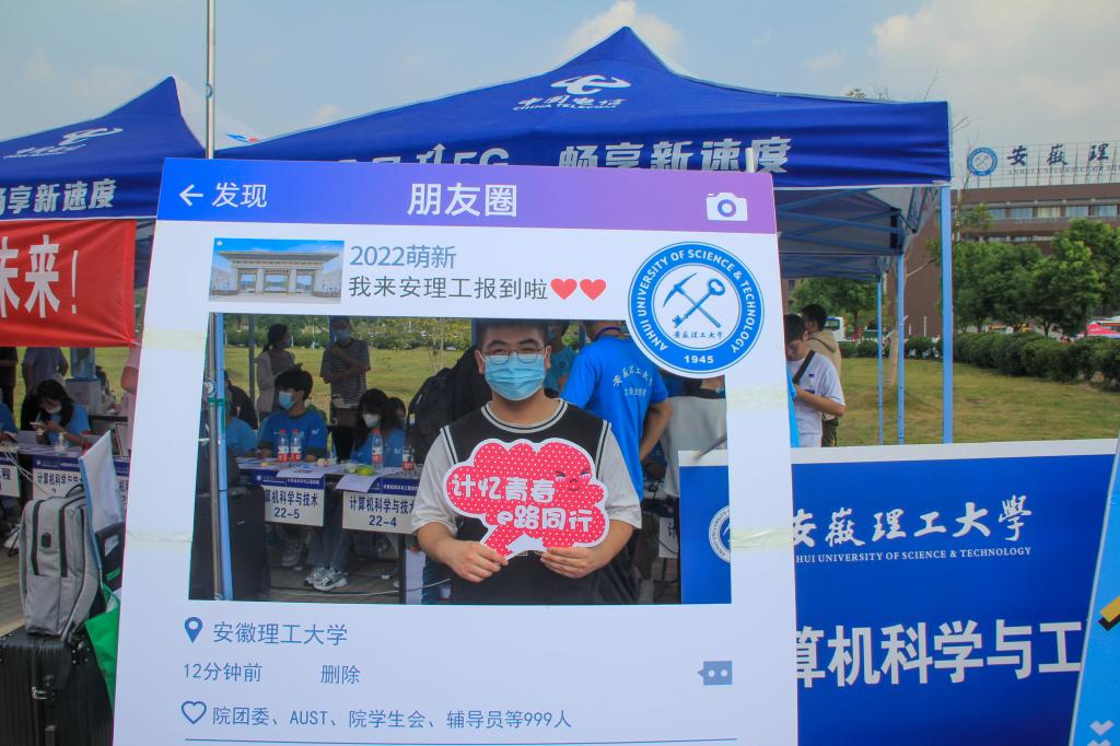 学院不断创新迎新方案,以学生喜闻乐见的方式开展迎新工作,让迎新现场具有“烟火气。”学院团委根据新生特点和新生教育要求,设计多种迎新展板,“请党放心、强国有我”、“计科导航、赋能未来”等打卡牌引得学生纷纷驻足打卡,为新生报到创造拍照留念的场所,定格记忆,收获学生一片好评。区块链22-1班的束婷同学激动地说道:“我们在学院制作的展板前打卡拍照、发朋友圈,感谢学院给我们满满的仪式感和参与感。”