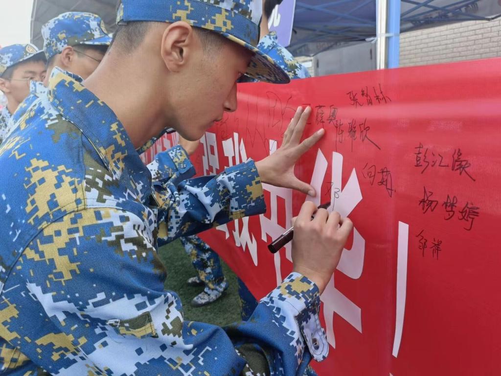 在军训练兵现场开展纪念签名活动,进一步激发了学生爱国主义情怀,引导广大青年学子自觉将爱国心、强国情转化为报国行,争做堪当民族复兴重任的时代新人。