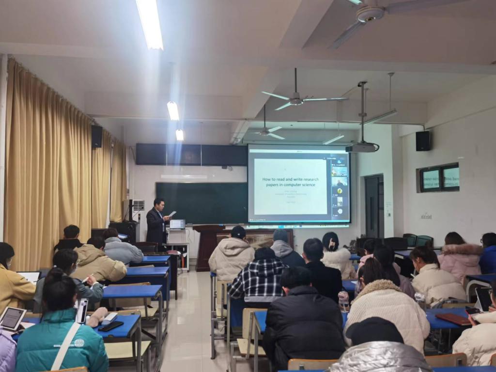 11月29日下午,应计算机科学与工程学院邀请,澳大利亚南昆士兰大学张吉教授作了题为“How to read and write research papers in computer science”的学术报告,报告会通过线上和线下相结合的方式进行,线下会议在求本楼B401报告厅举行。报告会由学院副院长葛斌教授主持,线上线下400余名师生聆听了报告。