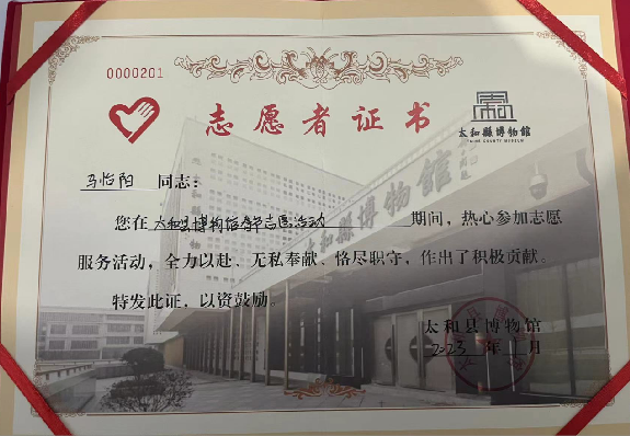 志愿服务证书(摄影:计算机学院各团支部提供)