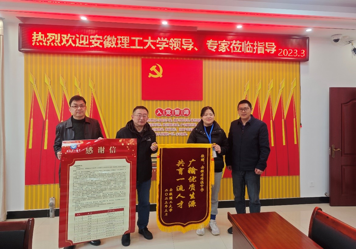 每到一所学校,回访小组与各中学校长、副校长、教导主任、年级组长及高三年级教师代表等相关负责人均进行深入座谈,开展招生回访交流会。会上,各组组长详细介绍了学校的历史沿革、办学特色、开设专业、师资力量、生源情况、人才培养质量、历年录取分数线等情况,重点结合学校2022年在学科评估和事业发展上取得的突出成绩,围绕生源地学生所关心的就业、升学、转专业等问题进行了详细解读。通报了近三年来学校的招生录取情况,对各高中对我校招生工作的支持及向我校输送优质生源表示感谢,并带去了我校毕业于宣城地区的在校生对高中母校的问候。交流中,各组向各高中负责人征求了关于招生宣传的宝贵意见,重点就下一步如何更好地推进高考招生工作进行了深入探讨。会后,各组长为高中赠与锦旗和感谢信,希望中学广输优质生源,共育一流人才。