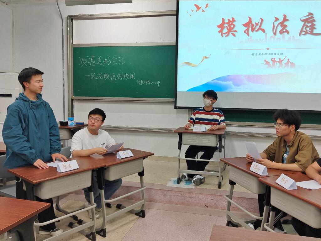 5月23日,信息安全22-2班团支部组织开展民法典学习模拟法庭活动,鼓励学生参与其中,切身实际地感受《中华人民共和国民法典》被称为“社会生活的百科全书”的重要性。通过模拟法庭让学生了解国家的法律方针和政策,学会运用法律武器解决问题,维护自身合法权益。