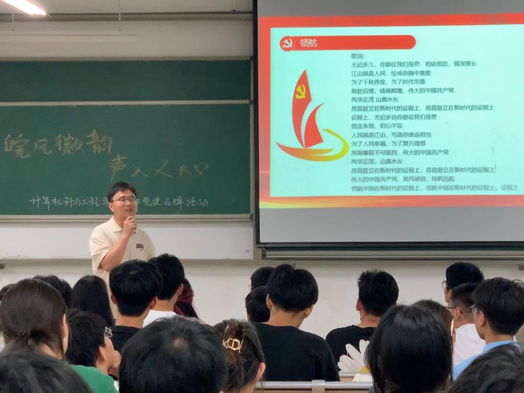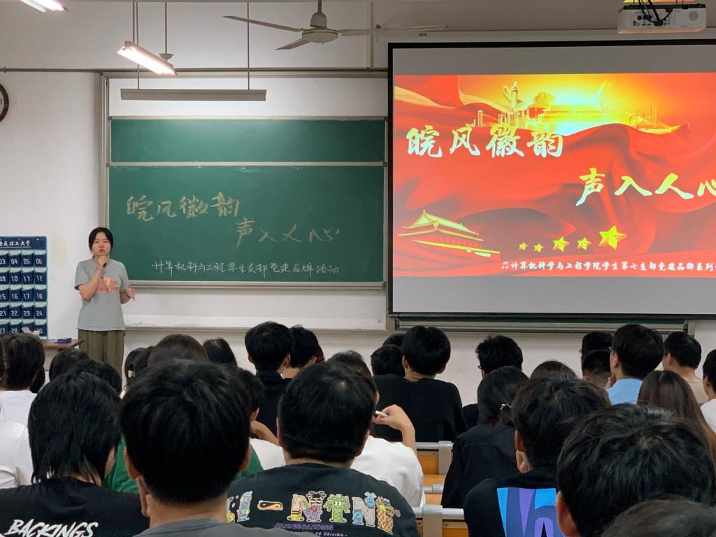 为进一步推动学习贯彻习近平新时代中国特色社会主义思想主题教育走深走实,6月19日,计算机学院学生第七党支部和学生第四党支部联合举办“皖风徽韵,‘声’入人心”主题音乐党课。