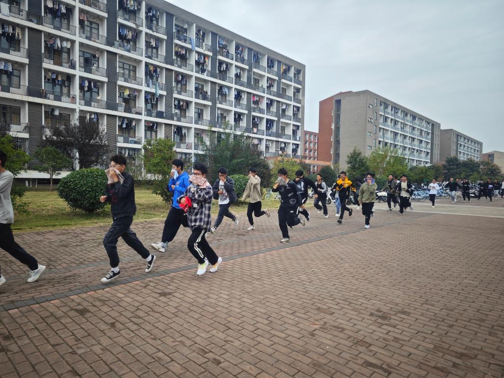 演练前,学院与保卫处部署做了周密安排,让大家熟悉演练的流程及要求。随着刺耳的消防警报声响起,义苑1号宿舍楼下“烟雾弥漫”,面对突如其来的“火”警,全体学生按照“消防演练预案”迅速行动,各楼层疏导员紧急有序做好学生的疏散工作,按照既定线路有序撤离,有的学生用湿毛巾捂住口鼻,有的学生弯腰前进,整个疏散演练过程学生们反映迅速,无任何安全事故发生。